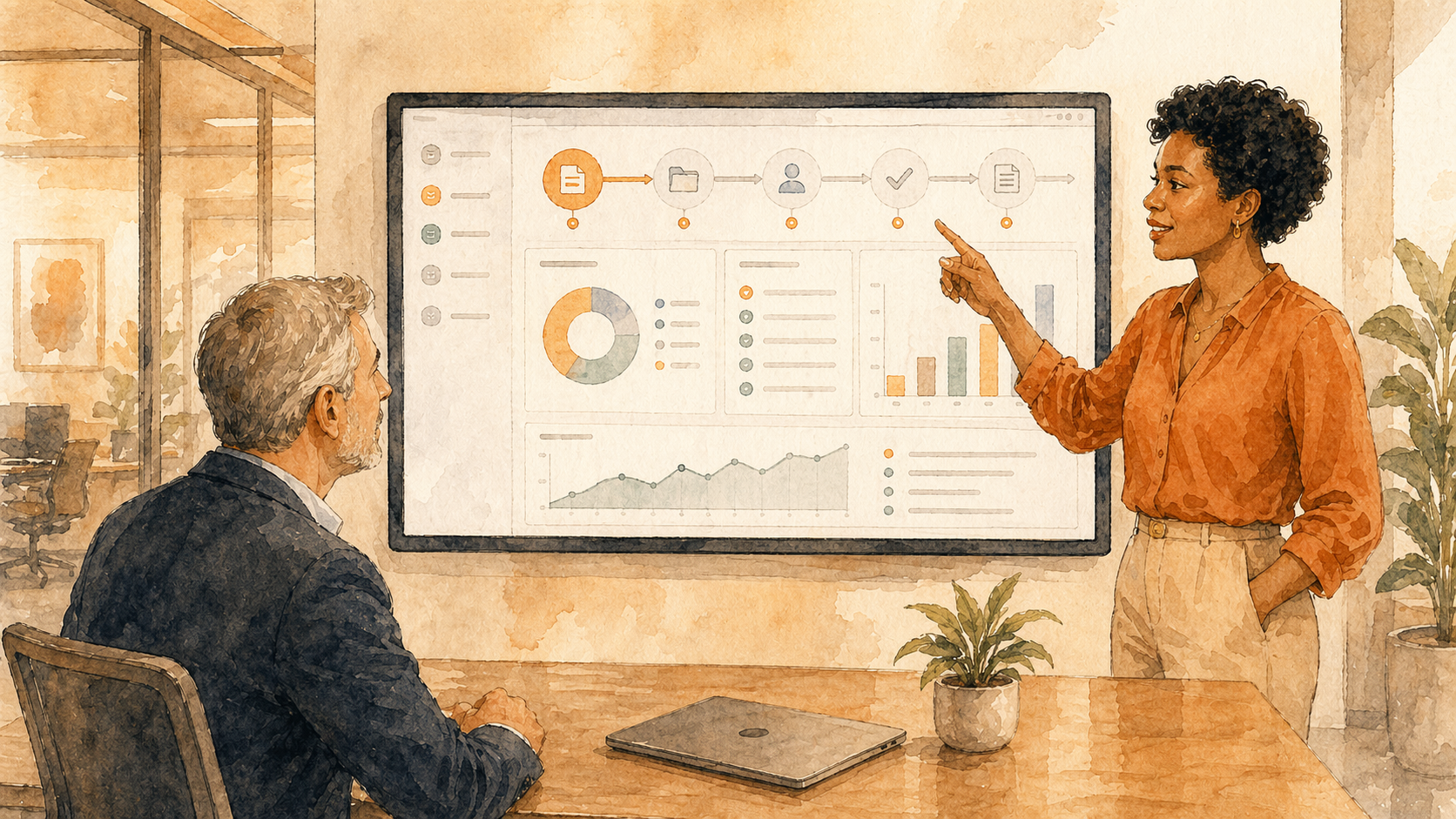 Generate reports and dashboards from your data and documents. Send documents for signatures, approval or any other workflow process.