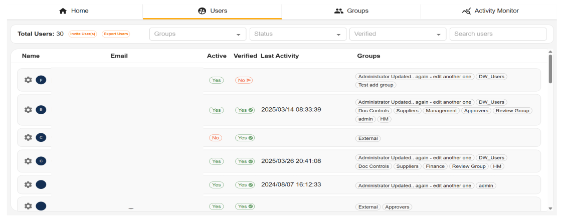 | Groups | The drop-down menu enables one to sort users by a relevant group. |