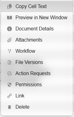 If users right-click on any document found in the grid display, a menu of options will appear.