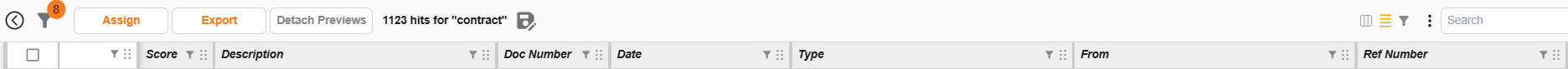 | Assign | Enables bulk assignment of selected/all documents to Folders, Workflows, Document Details, Tags, Grid links, Locations, etc. |