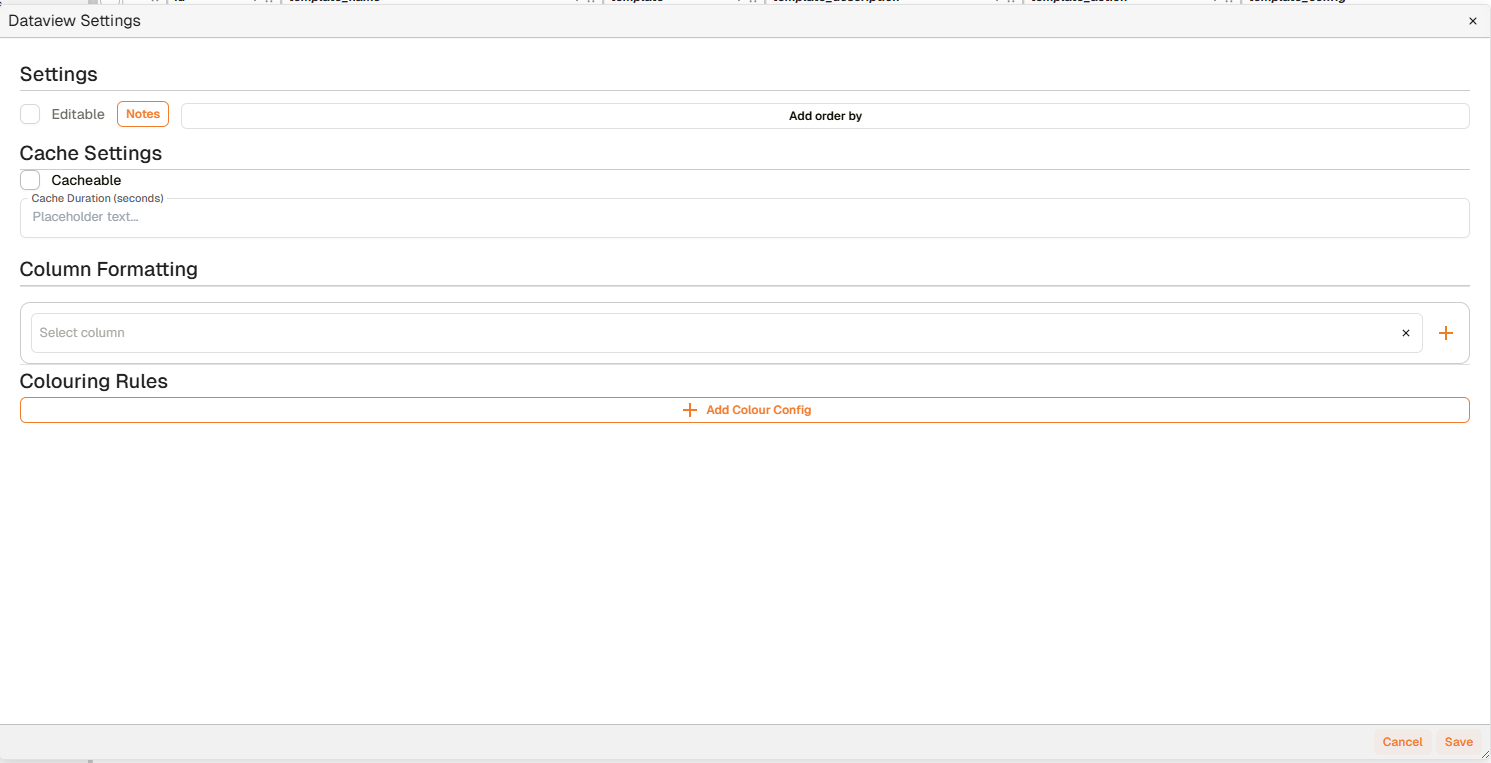 Dataviews Settings Dialog