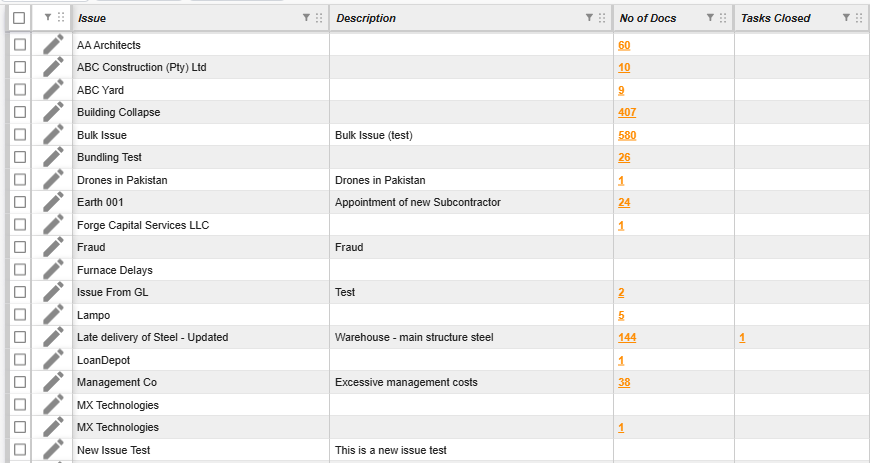 A dataview is a mechanism to create reports from any data within users' Docwize database or from external sources. Columns can be set up to be editable like an excel spreadsheet, with colouring, drilldowns, conditional formatting and more. Custom dataviews can be created by the Docwize team to suit the needs of an organisation. Users can also build their own dataviews.