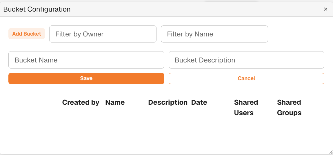 | Add Bucket | Users can click here to create a new bucket. |